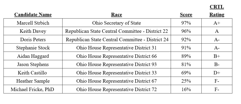 Based on the answers to our 2026 Primary Survey, Cleveland Right to Life is pleased to announce the below Ratings for these candidates.